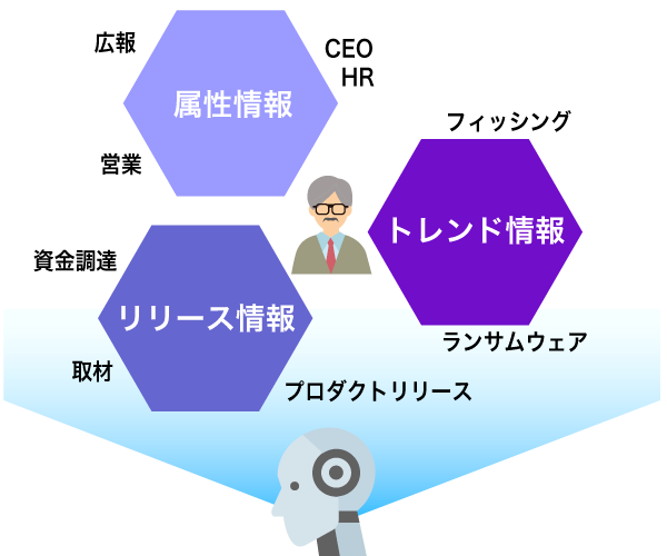 インターネット上でターゲット企業の概要やプレスリリースといった最近の動向などの情報をAIが自動で収集します。