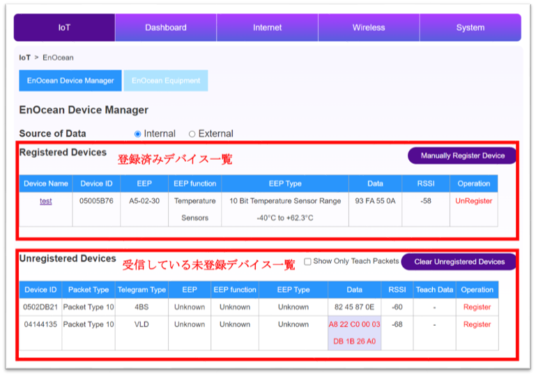 受信したEnOceanセンサをリストから選んで登録ボタンを押すだけです