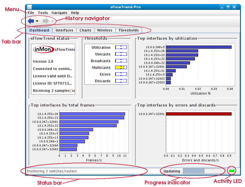 sFlowTrend-Proは、操作しやすいレイアウトでアプリケーションを実行できます。