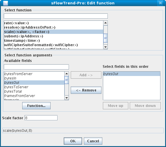 また、フィールドの関数を指定することも可能です。「関数(Function)」ボタンをクリックして、表示されるダイアログに従って関数を作成します。関数によっては、選択したデータベースに有効でない場合があります。